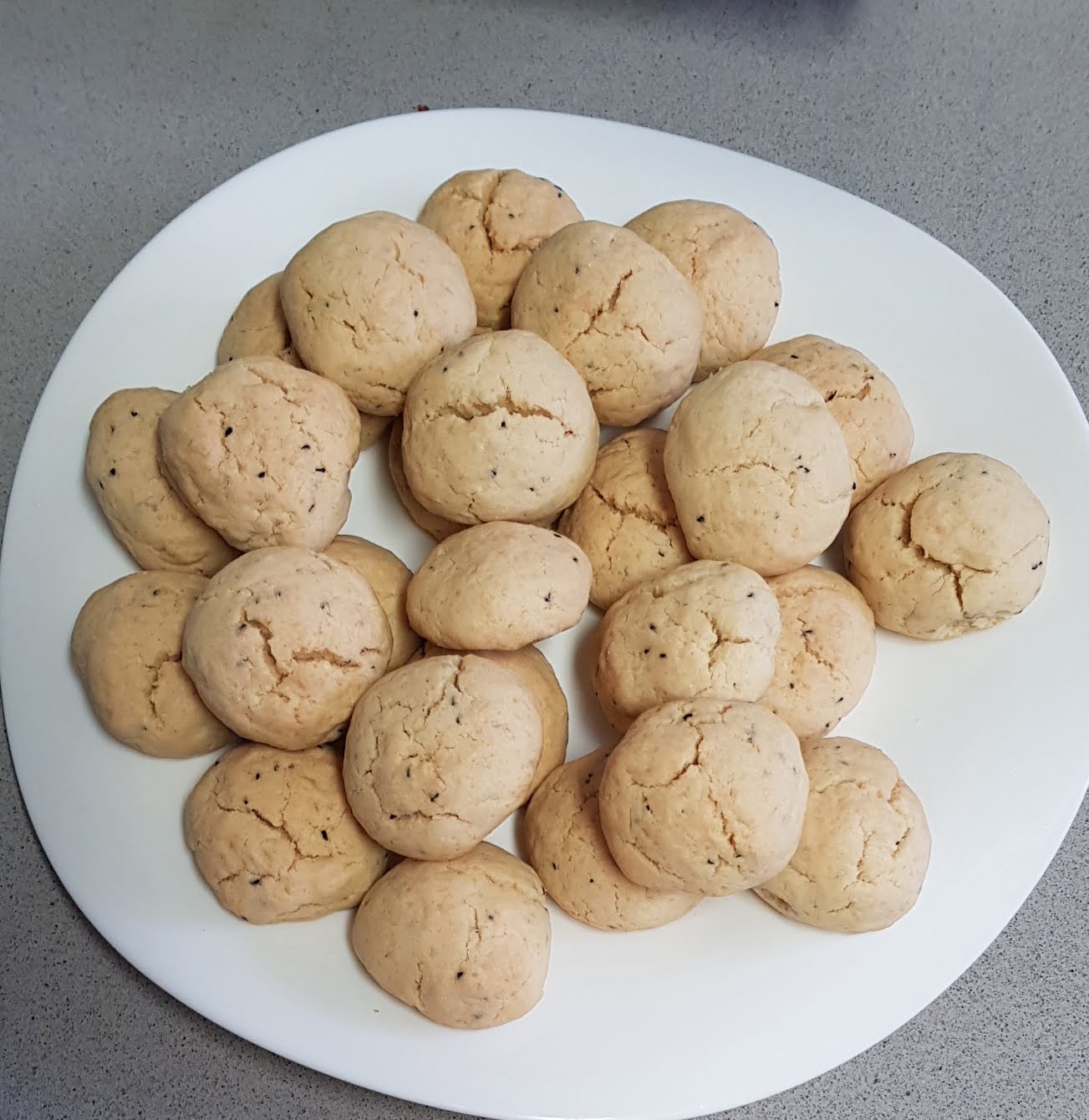 ללוש הכל יחד לקרוץ כדורים (40 גרם לכדור) לסדר בתבנית על דף אפיה