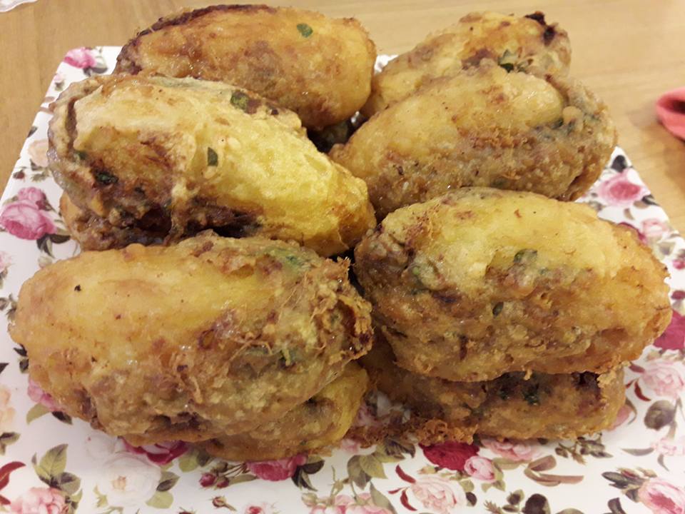 בקערה ל400 גרם בשר טחון להוסיף מעט שומן כבש לגרד בפומפיה. להמשיך לגרד בפומפיה בחלק הגס. בצל אחד בינוני. 2 פרוסות לחם רטובות וסחוטות. בחלק הדק תפוא אחד קטן. לקצוץ חצי צרור פטרוזליה וחצי צרור קוסברה להוסיף לקערה. לכתוש 2 שיני שום להוסיף לקערה. תבלינים: מלח. חצי כף כמון. חצי כף תבלין לקציצות. מעט ראס אל חנית. מעט בהרט. מעט אגוז מוסקט. חצי כף פלפל שחור. חצי כף א.מרק. מעט שמן. לטעום. לתקן טעמים. להניח לשעה מנוחה. בנתיים להכין 2 ביצים טרופות עם כף רסק עגבניות. כפית א.אפייה קמצוץ של סודה לשתיה וקמצוץ מלח. קערית של קמח (בערך כוס). לפני הטיגון להכין את תפוא מסוג דזירה האדומים המיועדים למילוי. לבחור את הבינוניים והארוכים. לחתוך לחצי לאורך. מכול חלק לחתוך באמצע אבל לא עד הסוף שיצא דמוי פה של ברווז חחחח למלא בבשר טחון. לטבול קודם בקמח אחכ בביצה ולטגן בשמן עמוק. בסיר קטן לטגן 3 שיני שום לא לשרוף. להוסיף 2 עלי כרפס. חצי כוס מים וקוביית צלי בקר של קנור . להעביר את הקציצות לתבנית חד פעמית. כשהרוטב רותח לשפוך על הקציצות ולהכניס לרבע שעה לתנור. להגיש חם.