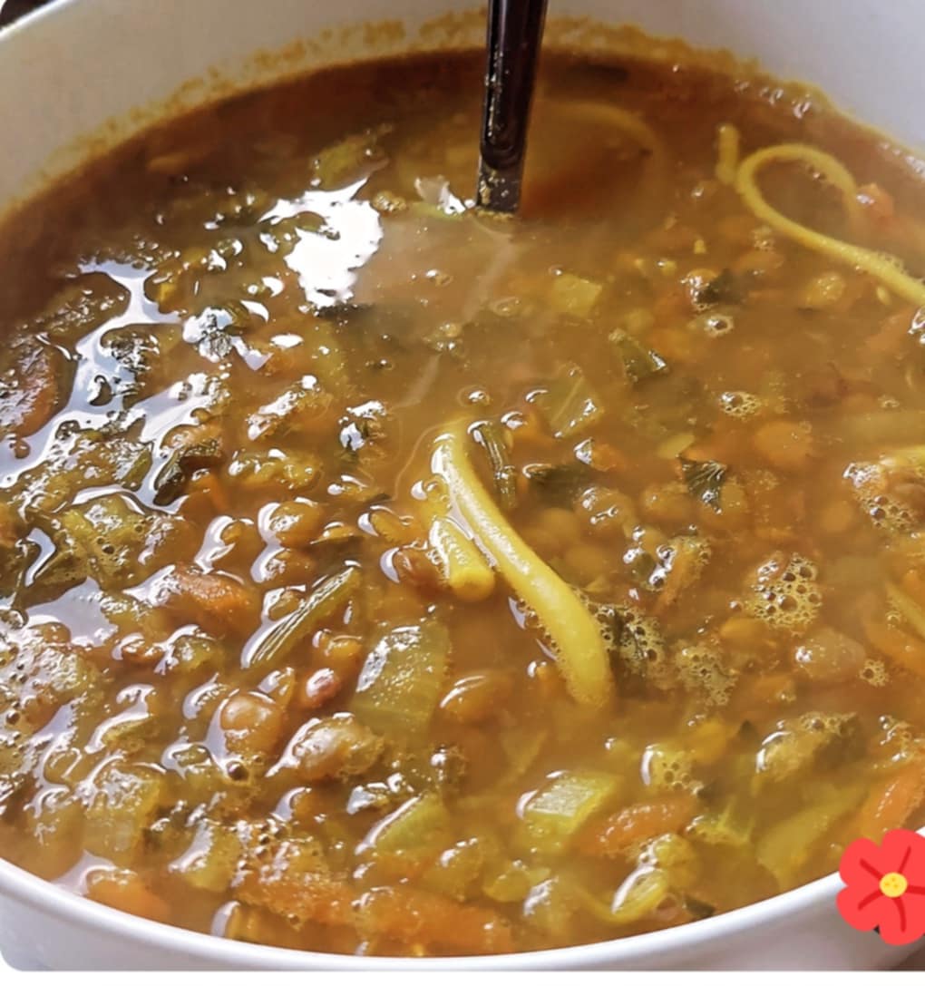 לטגן את הבצלים עד הזהבה, להוסיף סלרי, ואת הירק והתבלינים ולערבב להוסיף את התבלינים ואת העדשים והחומוס.