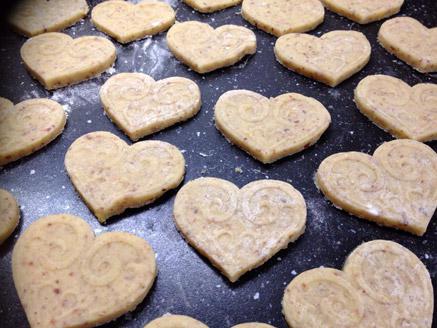 4. קורצים צורות מהבצק בעזרת שבלולים, מסדרים על נייר אפייה בתבנית, מכניסים לתנור ואופים כ- 15 דקות עד הזהבה.