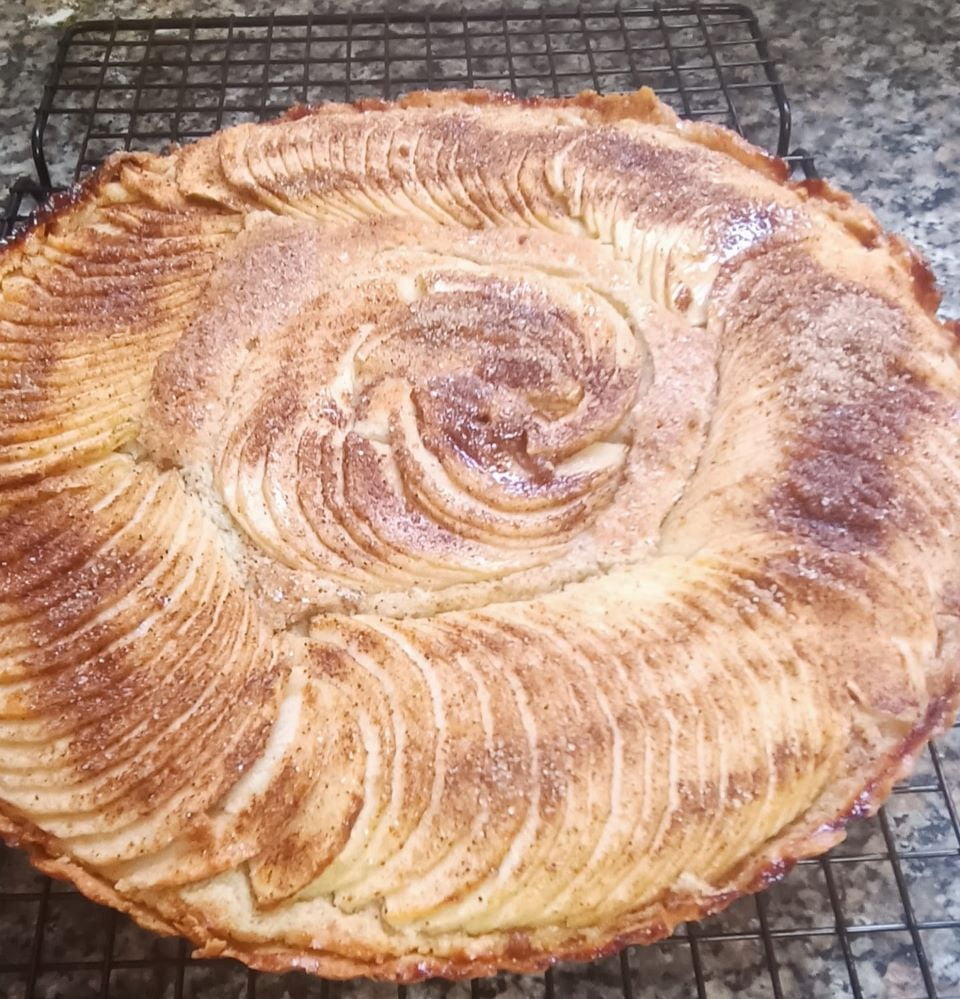 חותכים את התפוחים מסדרים על המלית מפזרים סוכר עם קינמון מעל. מכניסים לתנור. 180 מעלות 30 דקות עד הזהבה.