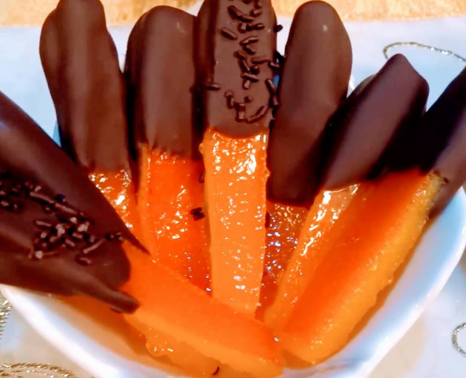 לשטוף היטב את התפוזים..לקלף ולחתוך לרצועות