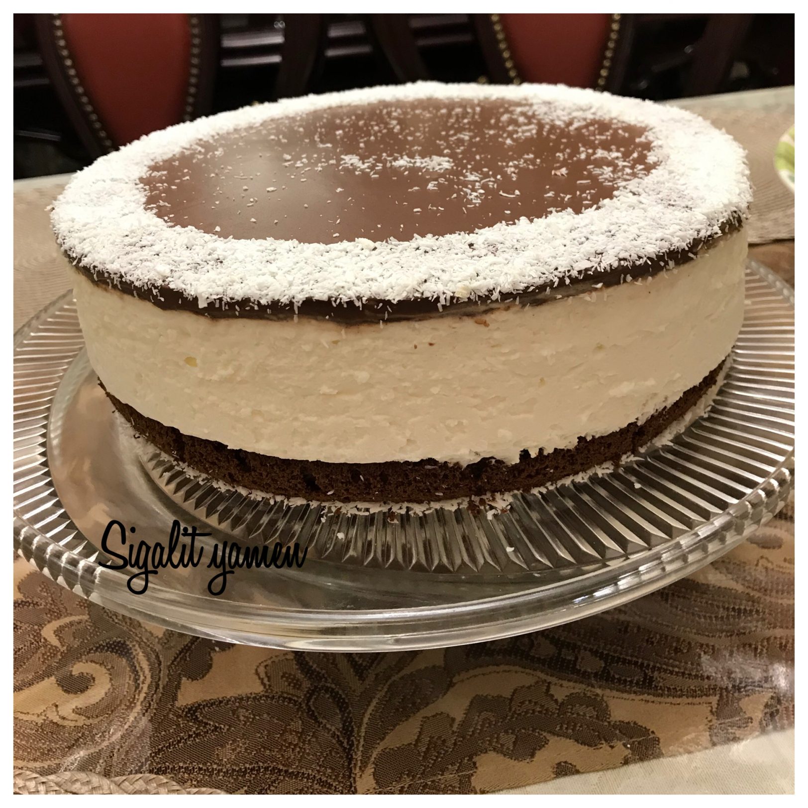 מקציפים שני שמנת מתוקה. עם רבע כוס סוכר, אינסטנט פודינג וניל, שמנת חמוצה,כוס קוקוס עד לקבלת קרם יציב משטחים את הקרם על העוגה